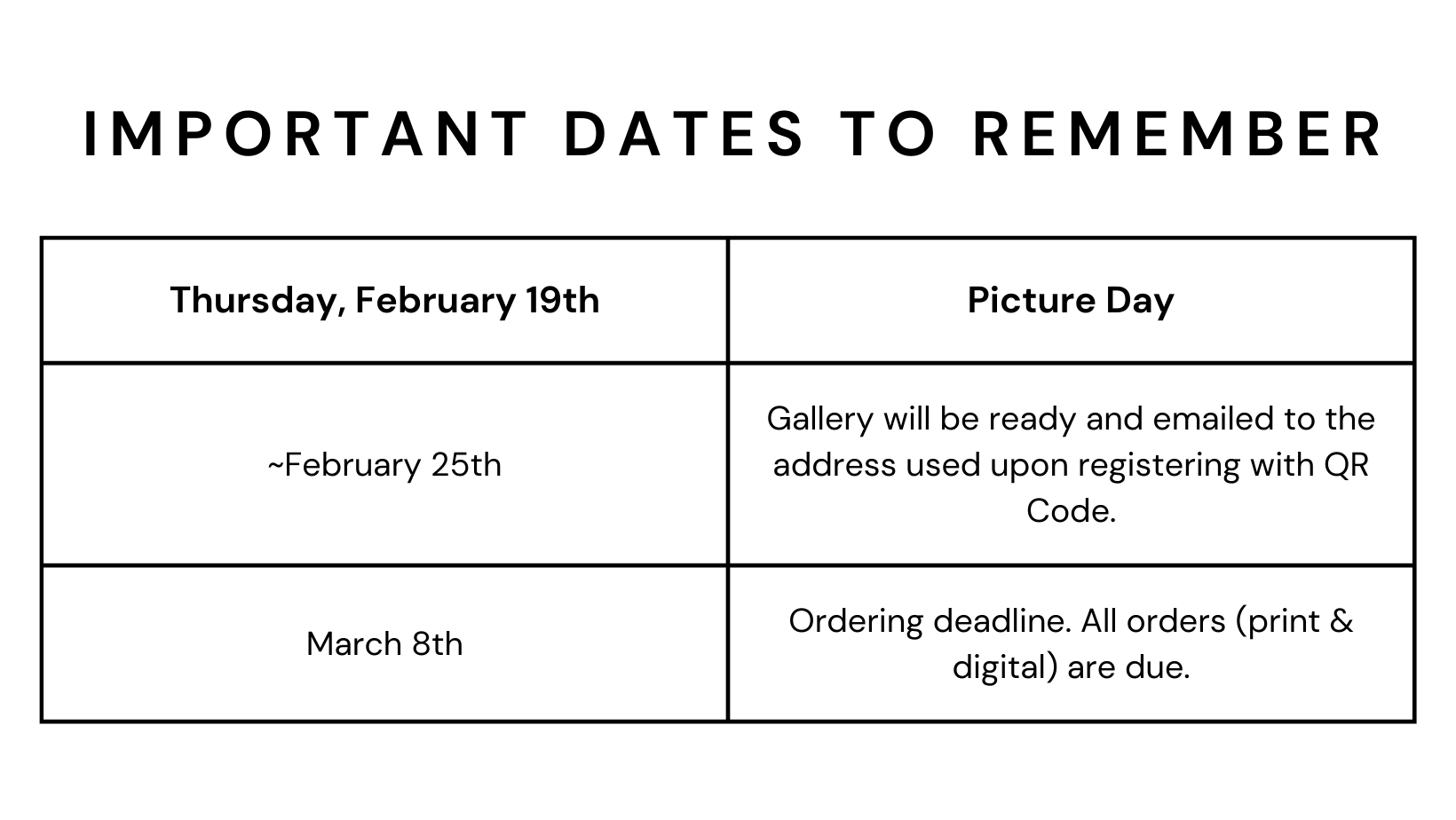 **PLEASE be sure to scan your child’s QR card when it arrives home. This will allow you to receive important information in regards to your child’s photos.*