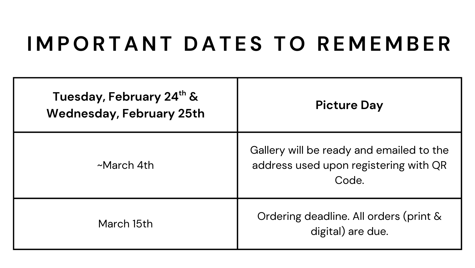 Picture days are Tuesday, February 24th & Wednesday, February 25th.