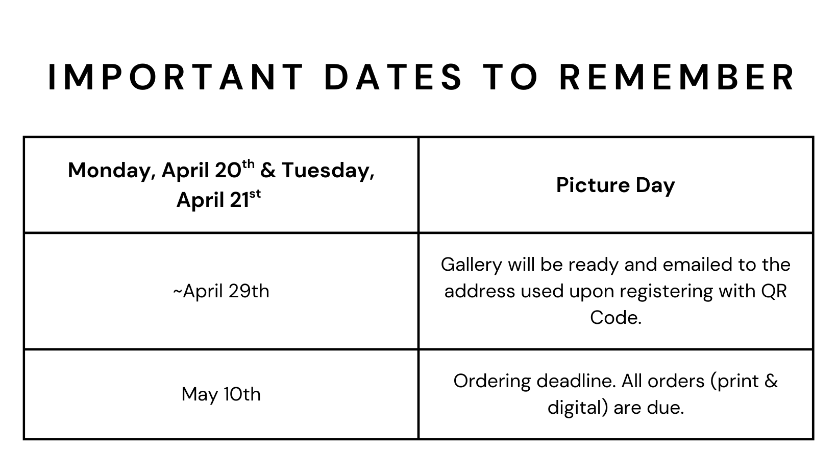 At the very latest, your child's online proofing gallery will be ready two weeks after picture day. Please refer to the "Important Dates to Remember" chart at the top of this page for more details. Once your child's gallery is ready, you will be texted & emailed a direct link to your child's gallery if you filled out this info via the QR code you have been provided. Digital images along with prints are available for purchase through the gallery.